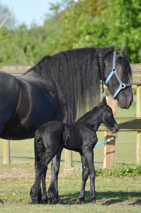 Après 11 mois de gestation, nous avons toujours un immense plaisir à voir nos poulains frisons pointer le bout de leur nez et commencer une belle vie.
